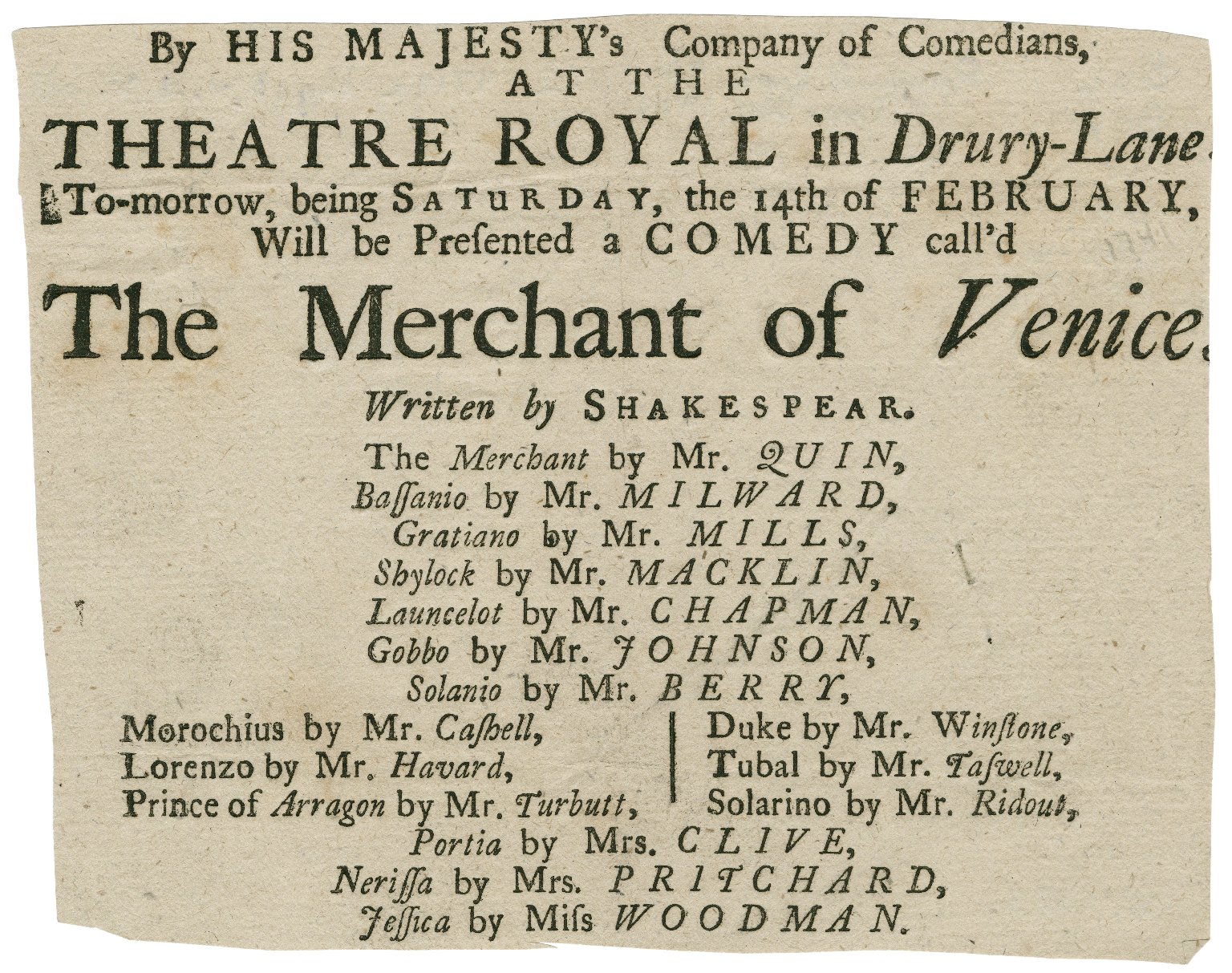 The Merchant of Venice, Theatre Royal of Drury Lane, 1741