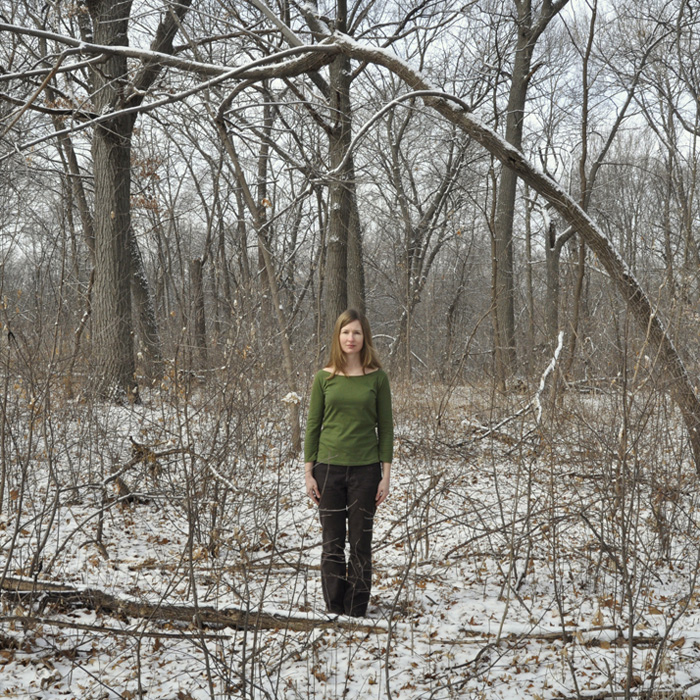 Humour is not particularly popular with photographers and curators. In spite of this, in her ‘Book of Trees’, McCartney appears in the photographs minimally dressed like a tree – with brown trousers and green top, or brown trousers and red top (in the ‘autumn’). The wooded landscapes are accompanied by captions that absurdly describe Paula as ‘Evergreen’, ‘Deciduous Tree,’ ‘Tree with Sapling’ or ‘Tree with Burl’.