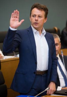na foto: O ministro da Valónia Carlo Di Antonio (cdh) presta juramento : “juro fidelidade ao Rei, obediência à Constituição e respeito às leis do bem-estar animal”